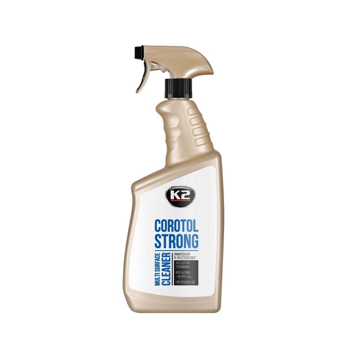 Το προϊόν είναι ένα ισχυρό καθαριστικό που περιέχει 69% αιθυλική αλκοόλη ενισχυμένη με 9% ισοπροπανόλη και υπεροξείδιο υδρογόνου και άλλων ειδικών συστατικών για την αποφυγή στεγνώματος στο δέρμα. Σχεδιασμένο για καθαρισμό μετάλλου, λαμινέιτ, γυαλί, κεραμικών, πολυεστέρα, ξύλο, και άλλων πολλών επιφανειών. Συνιστάται καθημερινή χρήση για εξάλειψη επικίνδυνης βρωμιάς.